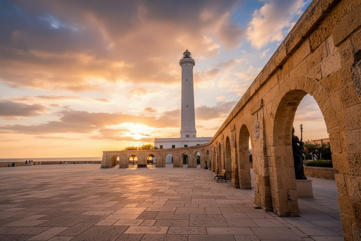 Il punto più a sud del Salento dove Ionio e Adriatico si incontrano, con la maestosa basilica, il faro e ville liberty affacciate sul mare.
