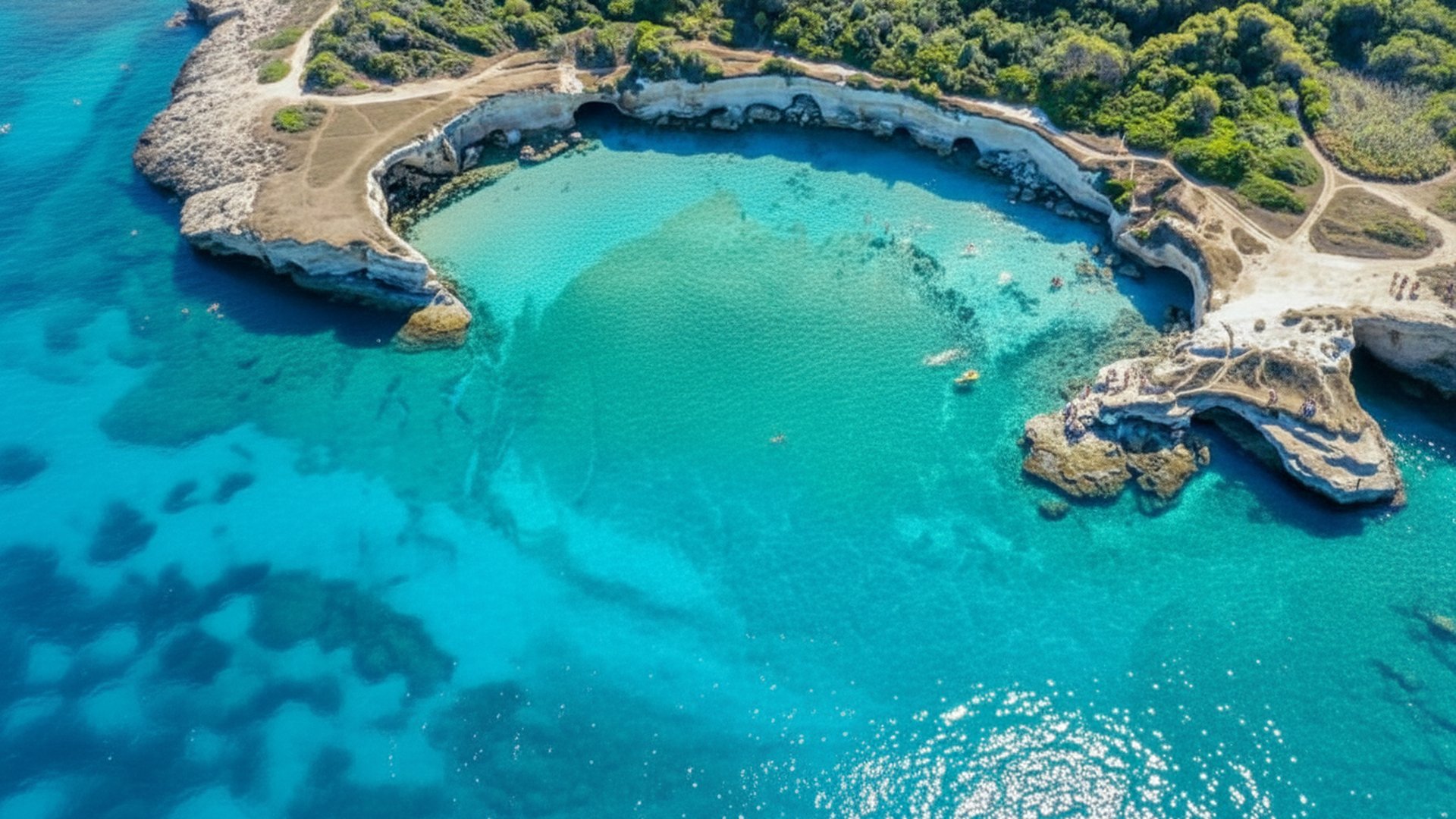A Roca Vecchia, una delle piscine naturali più belle al mondo: una cavità carsica affacciata sul mare, perfetta per un tuffo indimenticabile tra storia e leggenda.