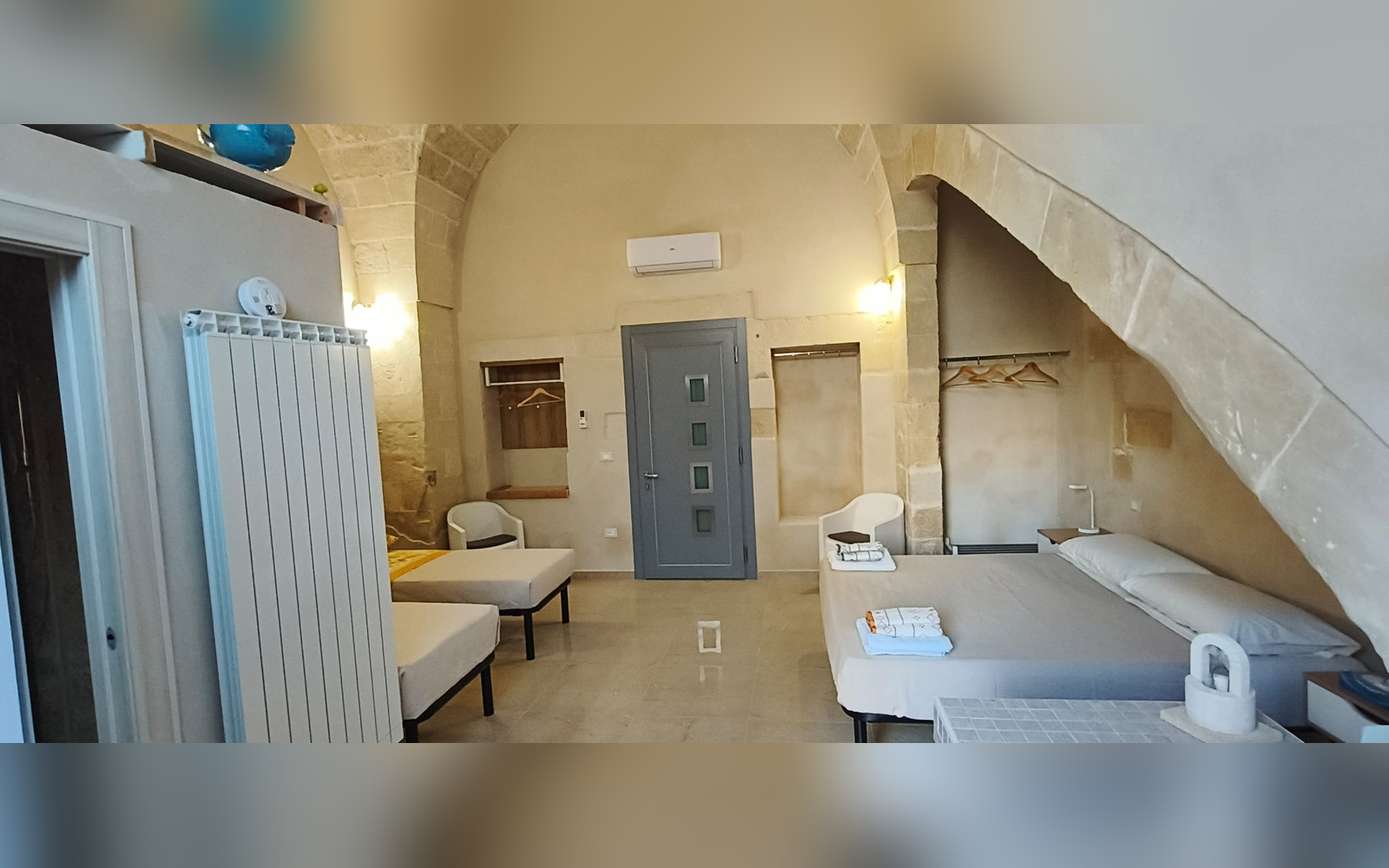 Camera di 37 mq con letto matrimoniale e due letti singoli, bagno privato e aria condizionata. Spaziosa e confortevole, perfetta per famiglie fino a 4 persone. Dispone di Smart TV, macchina del caffè e biancheria da letto e bagno inclusa. Include parcheggio privato di fronte alla camera per la massima comodità.