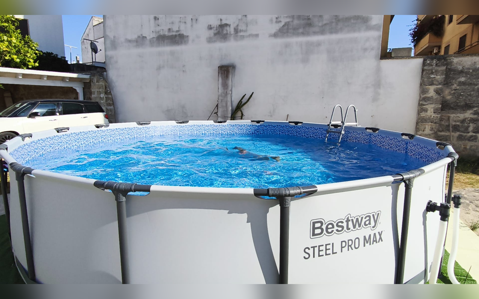 Piscina montabile disponibile nei mesi estivi per adulti e bambini.